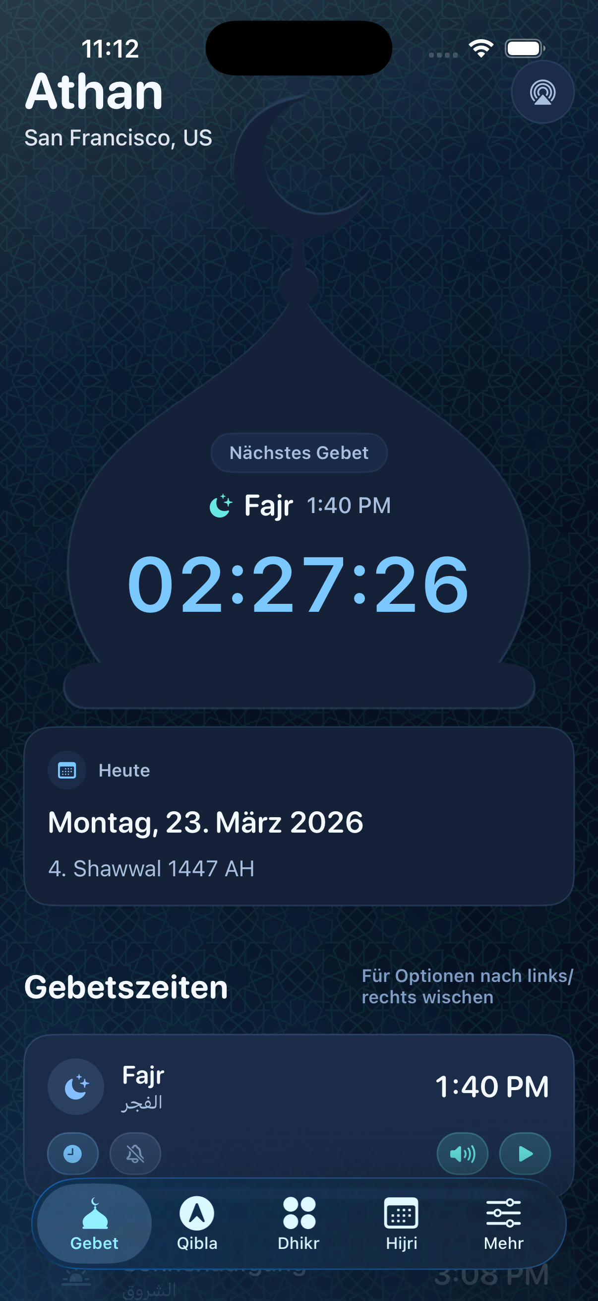 Kostenlos, werbefrei und trackingfrei. NourAthan bringt verlässliche Gebetszeiten, flexible Athan-Benachrichtigungen, Qibla, Apple-Watch-Unterstützung und mehr zusammen. Ohne Paywall und ohne unnötigen Ballast.